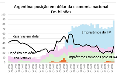 As reservas cambiais da Argentina estão mais baixas agora do que em 2018, apesar dos enormes empréstimos obtidos desde então. O ex-presidente Mauricio Macri tomou emprestado US$ 50 bilhões naquele ano do FMI – e este foi considerado com o maior resgate já feito por essa instituição. Mas ele foi comido pela ganância dos especuladores.