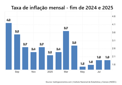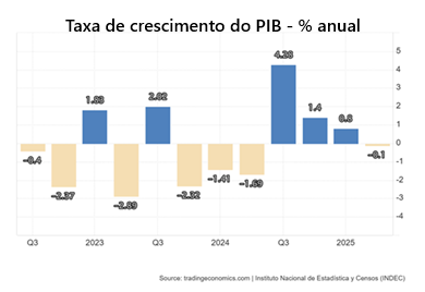 Dado a valorização do peso, a indústria argentina perdeu capacidade de competição; em consequência, o investimento doméstico foi desestimulado. Nos últimos seis trimestres (do 2º trimestre de 2024 ao 2º trimestre de 2025), a relação investimento/PIB teve uma nova baixa média de 15,9%. As taxas de investimento são baixas porque a rentabilidade do capital investido na Argentina está em um nível muito baixo, tão baixo como nunca esteve antes.