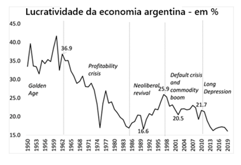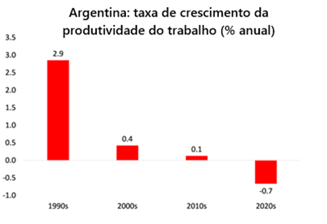 Como apontou o Rolando Astarita, um renomado economista marxista argentino, a fraqueza subjacente da economia argentina é devida ao atraso tecnológico na produção de mercadorias. Exceto em setores onde a economia argentina tem vantagens naturais, como na geração de energia na região de Vaca Muerta ou na produção de comodities nos complexos agroindustriais da soja e do milho, os padrões de produtividade são baixos em relação aos padrões internacionais. Mesmo em soja, trigo e milho, a produtividade está abaixo da que se observa nos Estados Unidos. Essas diferenças se devem, essencialmente, a diferenças no nível de investimento em insumos e em tecnologia.