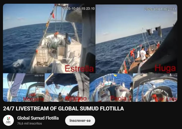 Apesar das ameaças, a Global Sumud insiste em avançar. “Não nos calarão. Gaza não está sozinha”, declararam os ativistas em nota coletiva. Desde ontem, o mundo pode acompanhar imagens do avanço da caravana em tempo real, pelo YouTube, neste link.